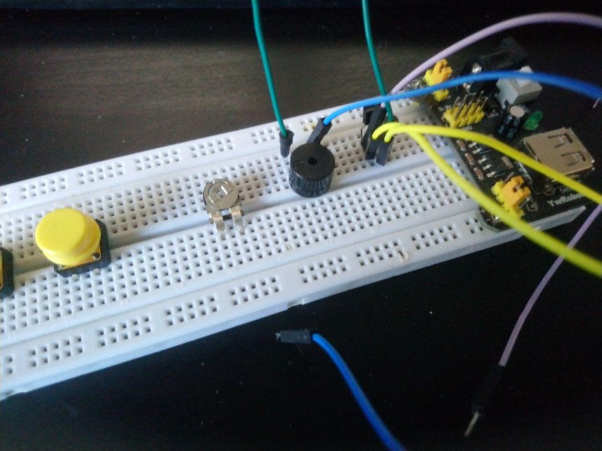 Om deze mooie creatie tegen ongelukjes te beschermen, heeft Daniel mij gevraagd een watersensor te maken voor de auto. De sensor bestaat uit een zoemertje en een transistor. De zoemer behoeft geen uitleg. De transistor versterkt een lekstroom, die door eventueel water in de auto loopt, en laat de zoemer geluid maken.