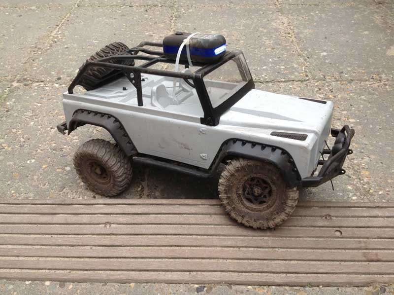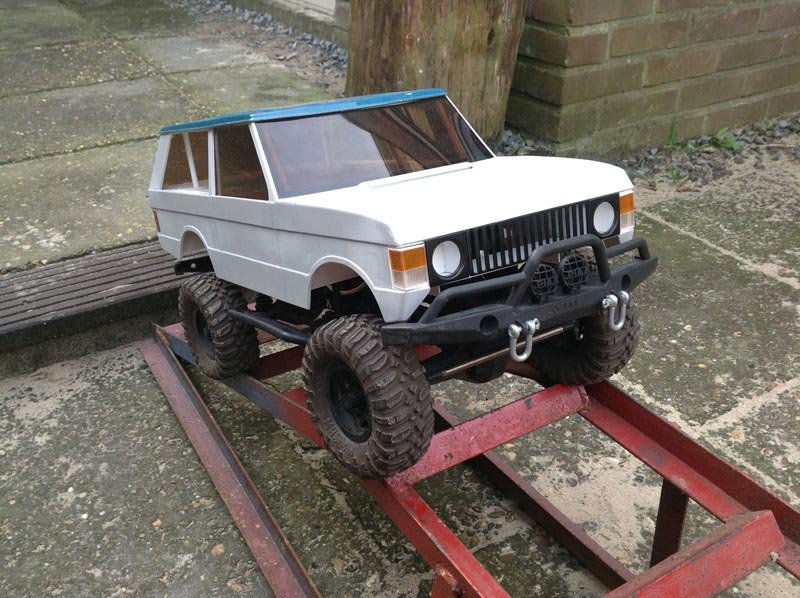 Als eerste een Axial SCX10 Dingo Kit met zelfgemaakte Range Rover body. Dit was alweer in 2013... mijn eerste RC ever.