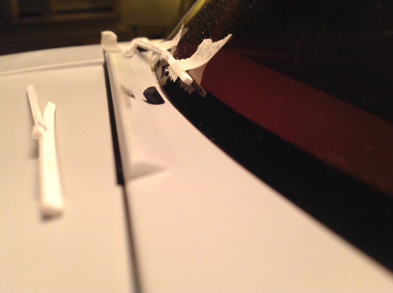 Een paar oude Range Rover lamplenzen in stukjes gezaagd, gevijld en aan elkaar gelijmd tot lamplenzen op schaal
