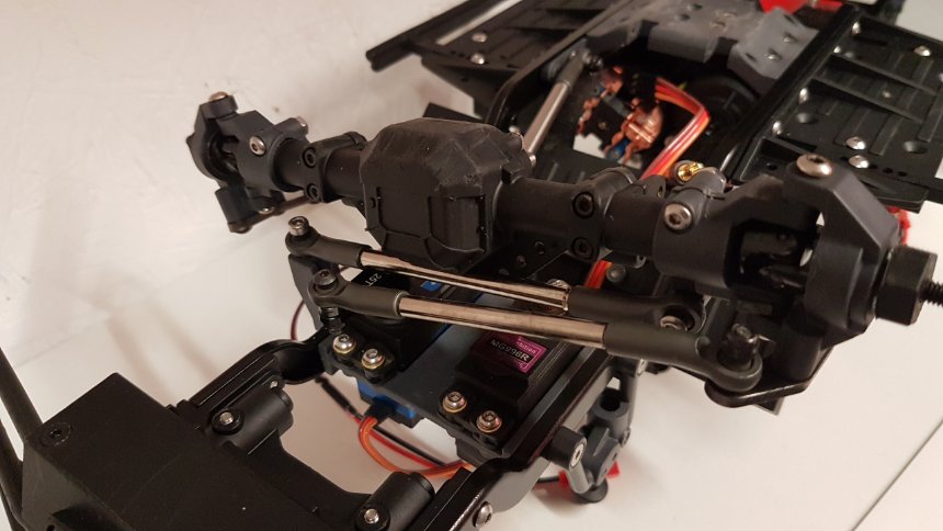 Wel aangepast. De C-hubs hebben aan beide kanten een stop nokje. Doel zorgen dat de wielen niet verder kunnen draaien. Ik had de indruk dat met wat dremelen ik er toch nog wel 1 a 2 graden extra draaicirkel uit kon halen. Dus...