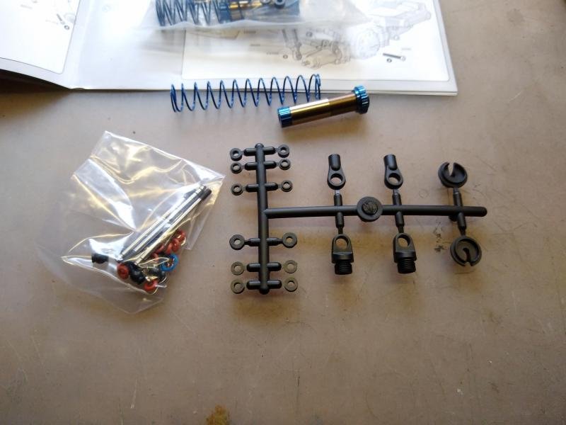 Ik had één gevuld met cps 250, dat werkt op de Redcat super, maar hier mooi even niet. De mee geleverde olie is dunner (staat niets op...) en zit er nu in. Daarmee is de demping acceptabel, maar eigenlijk nog niet helemaal zoals ik het graag zie. De standaard veren zijn stug/hard, daar is ruimte voor verandering/verbetering.