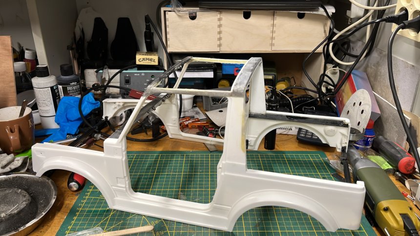 Na het verwijderen van het dak is de body is verstevigd met een paar lagen styreen van 1mm dik om het geheel weer wat stevigheid te geven