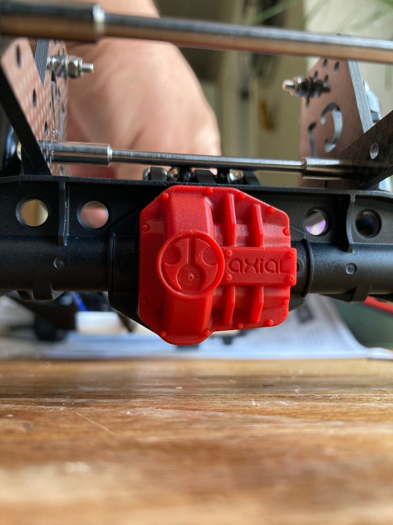 Ik had dat inderdaad uit kunnen rekenen, maar heb het niet gedaan. Deze setup wordt veel gereden. TGH motormount, TGH transfercase icm Axial AR45P. Ik ga nu ook voor het eerst op 3s rijden en heb een Hobbywing Fusion Pro (2300KV) in bestelling staan. Denk dat het wel goedkomt. Hoop ik.....hahaha