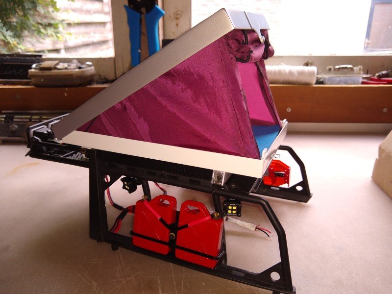 Is metallic zwart van Valleyo, is onverdund prima te verwerken met een 0,5mm nozzle. En het meest maffe: het ruikt naar zoete snoepjes. En ja, die ronde kanten hadden netter gekund maar ik vind het, bij gebrek aan geschikte filler, wel best zo. Grootste deel zit straks toch onder het dakrek. En oud Chinees spreekwoord zegt: Aan de kleine imperfecties herken je het echte handwerk...