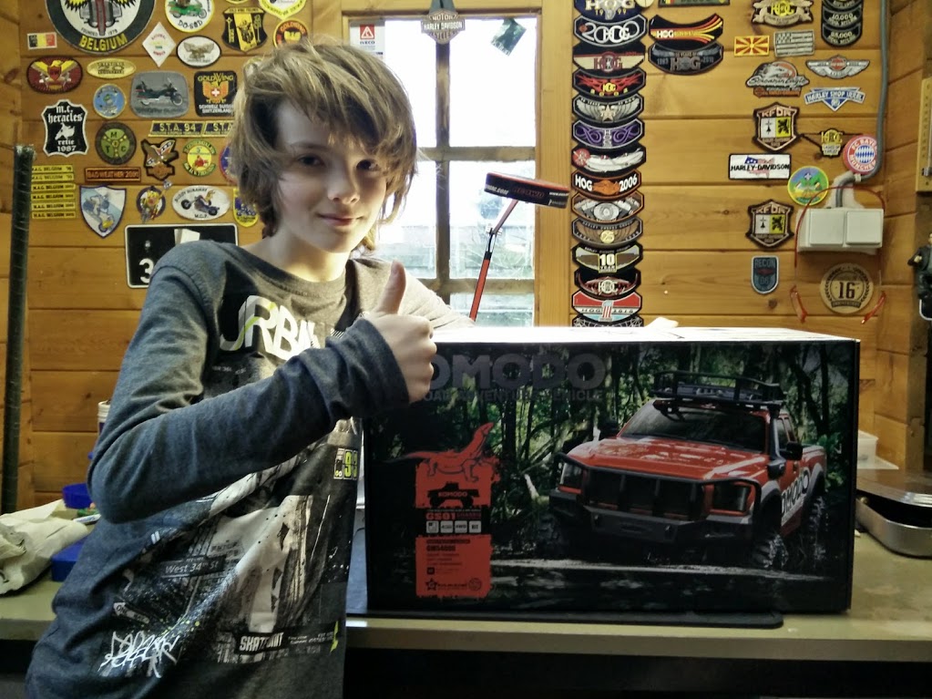Hij wilde voor zijn verjaardag sparen voor de FTX Outlaw (Yeti look-a-like ). Conrad verkoopt hem voor veel minder als Reely Bulldog. Dus ivm een verlopende waardebon die ik nog had toch maar vast besteld.
