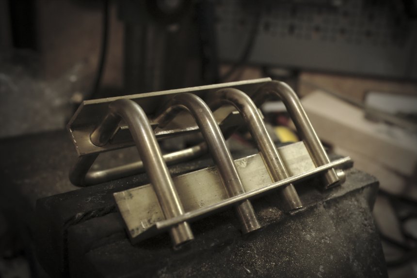 Zojuist dus maar opnieuw begonnen te buigen, met een nieuw stuk messing. En toen wel de bumper erop gezet voordat ik de 2 laatste bochten maakte. Zoals altijd wordt de 2e poging minder mooi dan de 1e gelukte poging. Maar ja, die bumper moest er toch op.