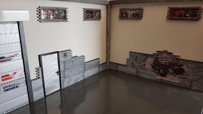 Volgende stap is de garagevloer delen die ik 3D geprint had op de vloer plakken.