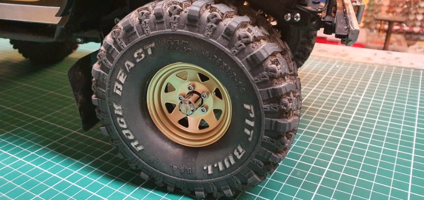 Nieuwe velgjes onder de Trx4 Jeep the Golden Eagle.