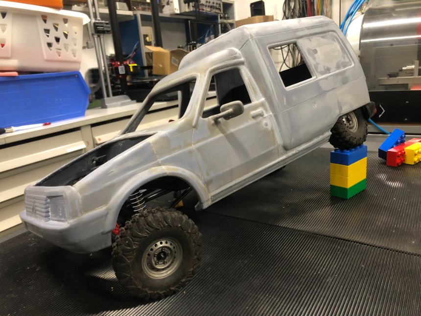 Gevalletje “beetje dom”. Had met het uitmeten van de wielbasis even geen rekening gehouden met het feit dat de achterbumper deel uitmaakt van de wielkast vorm. Is dus te lang geworden