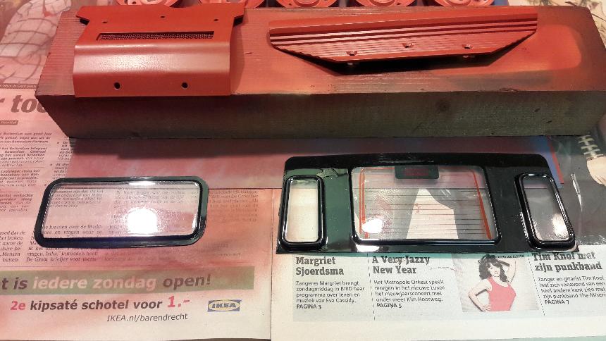 Aangezien ik ook een aantal kunststof delen mat zwart wilde spuiten moest deze eerst met kunststofprimer behandeld worden.