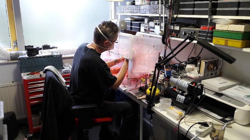 De rest moest eerst in de - Non-Ferro-Primer gezet worden. Gelukkig is dit op waterbasis dus er zijn eigenlijk geen giftige dampen. De eindkleur zou mat zwart worden.