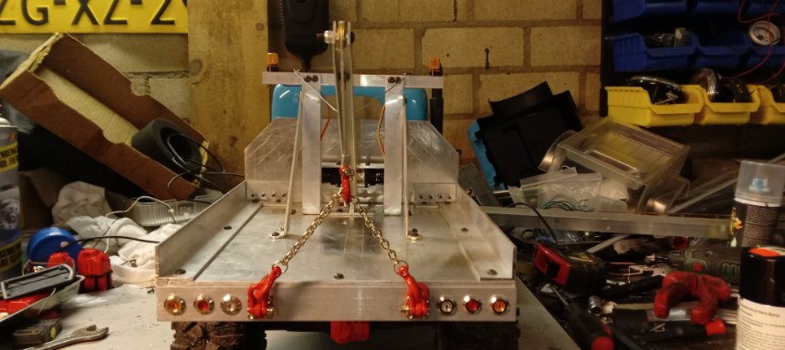 De takelarm is bijna af en ik heb het lier werkend gemaakt. En achteruitrijlichten toegevoegd ipv dubbele achterlichten aan beide kanten.