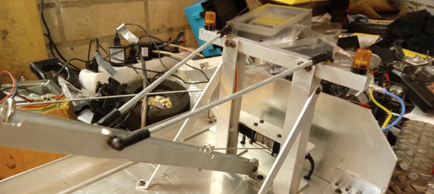 Kleine update. Ik heb de staalkabels die de kraan omhoog hielden vervangen met zelf gemaakte links. Dit is veel stabieler.