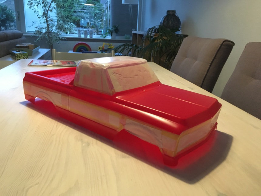 Dan stickers plakken, handgrepen, grill, ruitenwissers vastmaken en kijken hoe de magneten het best vast gemaakt kunnen worden.