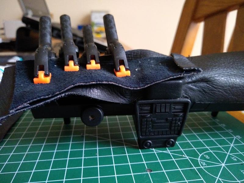 Zo krijgt mijn plm. 30 jaar oude afgedankte motorjas een tweede leven. Helemaal rimpelvrij krijg ik het niet, leer van een motorjas is behoorlijk dik.