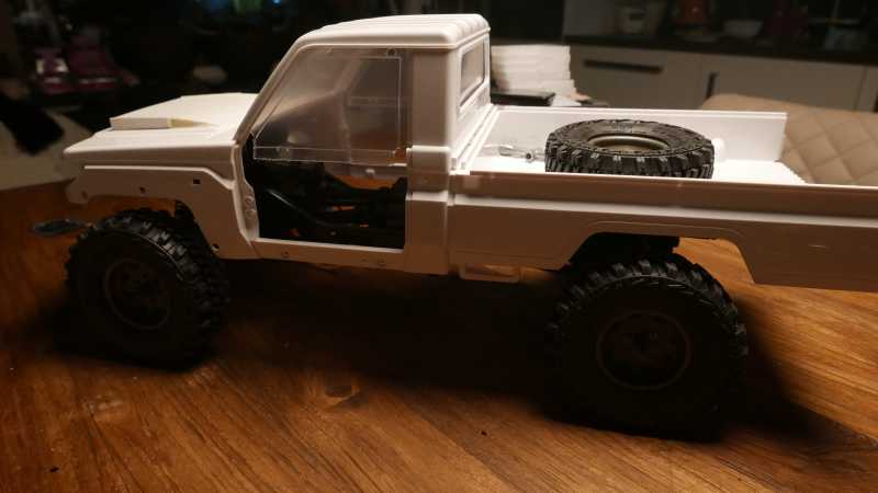 Een tussenstand met de body op de juiste hoogte. Nog wel zonder de fenders.