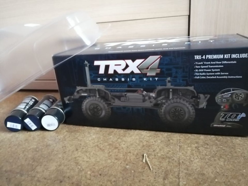 Trx-4 chassis, Orange Body, lichtset. Het opbouwen kan beginnen.