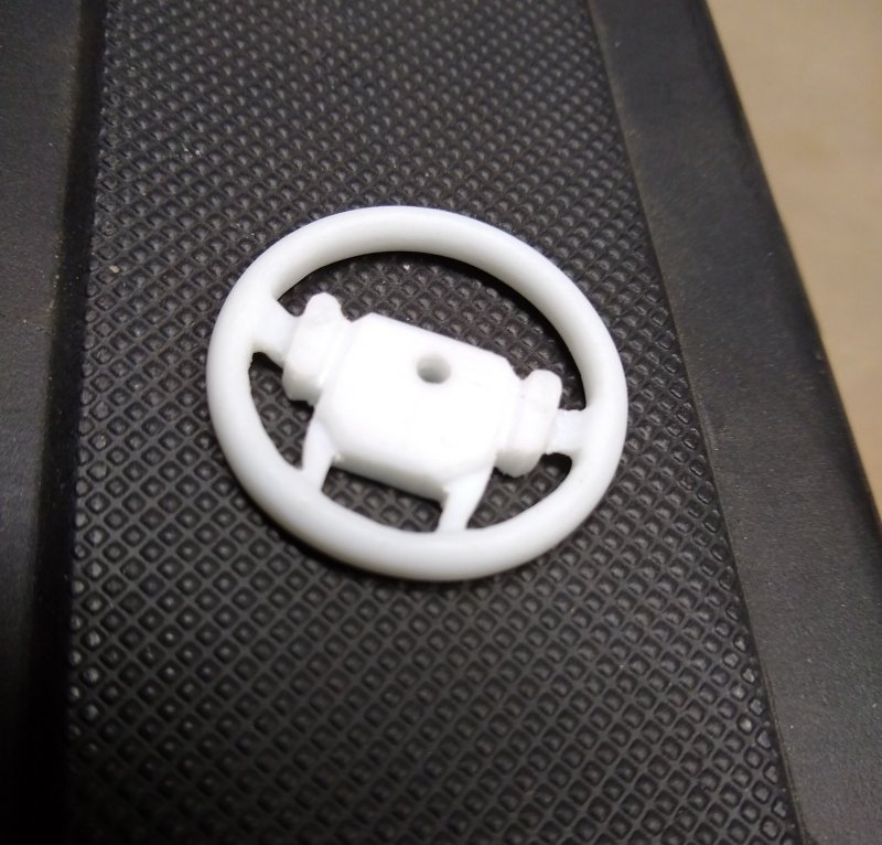 Het dashboard stond me toch nog niet helemaal aan, heb het model iets gewijzigd middels een extra laag 0,5mm styreen. Het pas maken zodat het weer klopt t.o.v. de carrosserie was vervolgens behoorlijk tijdrovend maar ben nu wel tevreden met hoe het er uit ziet. Nu kon ook de plaats van het stuur definitief bepaald worden...