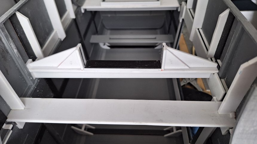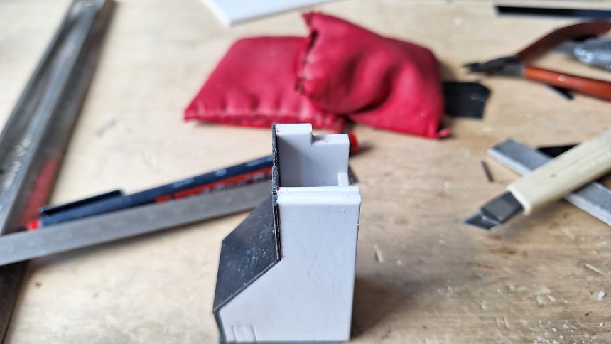 Ook dit klusje was weer een behoorlijk 'klusje' want het is heel veel denk, pas- en meetwerk. Je moet het allemaal zelf bedenken en maken. Styreenplaat - in verschillende diktes - is hierbij erg handig en zinvol. Makkelijk te verwerken - meestal volstaat een paar keer inkepen met een goed scherp Stanleymes o.i.d. - en te lijmen. Ik gebruik voor de naden eigenlijk altijd UHU PLast en voor grotere oppervlakken Humbrol Liquid Poly. Vanwege allerlei vluchtige oplosmiddelen zijn beide lijmen zijn niet echt heel erg goed voor de gezondheid. weinig tegelijkertijd gebruiken en goed ventileren is een MUST! N.B. : ik heb mijn Cherokkee Lufthansa met de zelfde materialen omgekat en na een nachtrit in Maledegem (lees: het naar beneden vallen van grote hoogte is daar meer regel dan uitzondering...) was er geen naad gescheurd of iets dat gelijmd was, afgebroken. De eerlijkheid gebied mij te zeggen dat ik de gelijmde naden deels uitgefreesd en met Bizon Kombi PLastic twee componentenlijm gevuld heb. Dubbel op dus eigenlijk