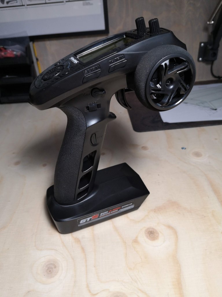 Omdat in mijn vorige auto (Carisma Lynx) de Hobbywing 1080 me zo goed beviel heb ik deze besteld. Samen met de Turnigy GT5 handzender (incl. ontvanger).