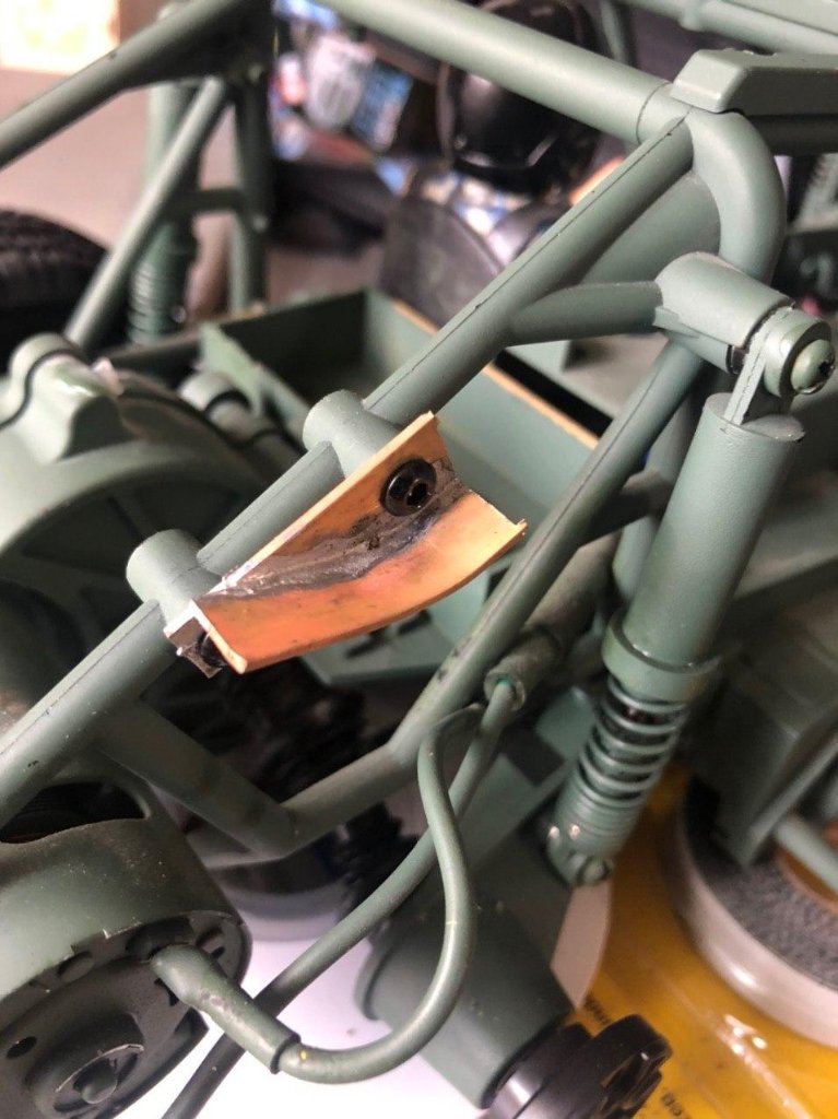 Aan de buitenkant een antennesteuntje gemaakt en er een antenne opgeschroefd.