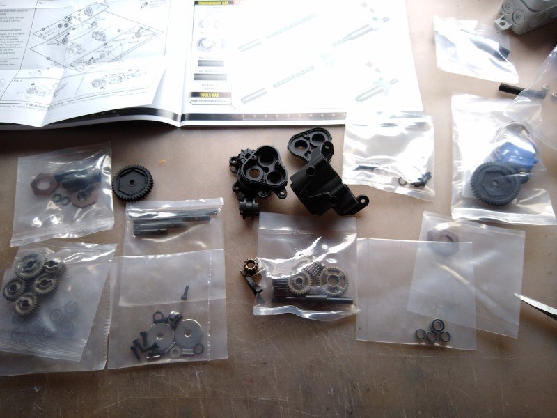 Het begon gelijk lollig, de beschrijving van de 2-speed-kit vind ik nogal chaotisch. Zal aan mij liggen, heb de handleiding van de uitgebreide kit er maar bij gepakt... Moet dat er allemaal in? Nope, dit is genoeg... En je houdt dit dus over... Eerste deel afgerond, en het werkt ook nog...