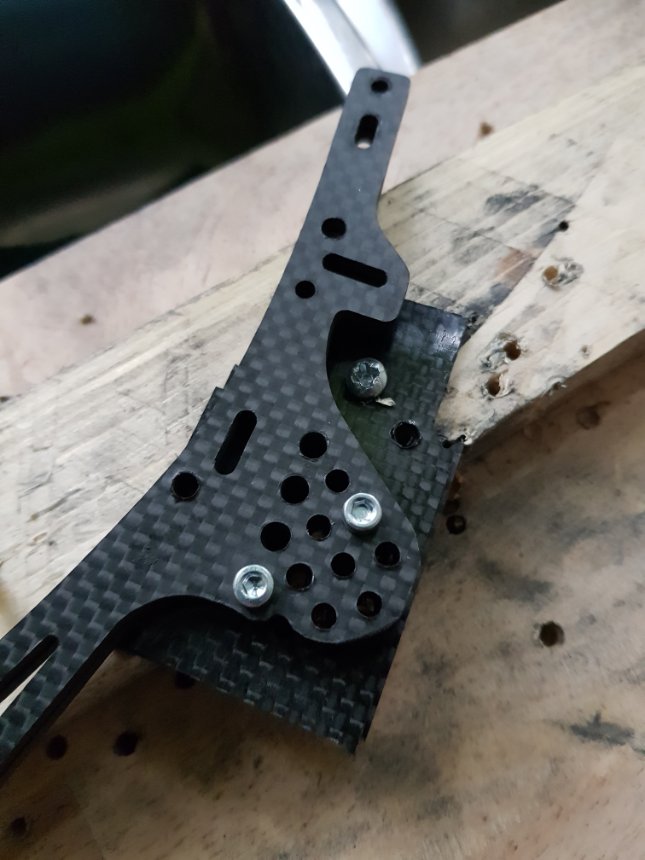 Met aluminium staf en U-profiel uit de bouwmarkt en een restant carbonplaat een nieuwe start gemaakt.