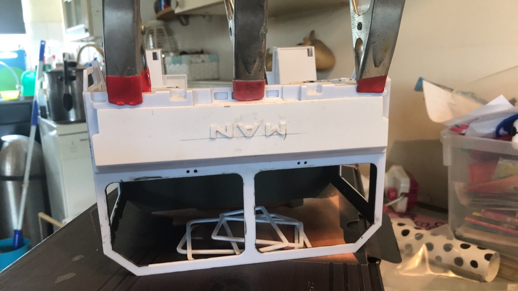 Ben begonnen met de bouw van de cabine, voorlopig ga ik alleen die gebruiken en blijft de bak nog ff in de doos. Zover ben ik tot nu toe.